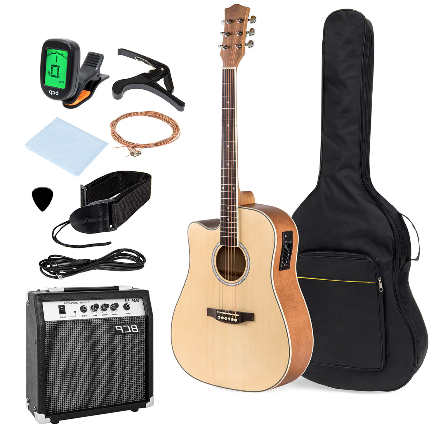 Acoustic Starter Guitar Set - 41in Full Size Acoustic Electric Cutaway Guitar Set Beginner Starter Kit Music Ebay