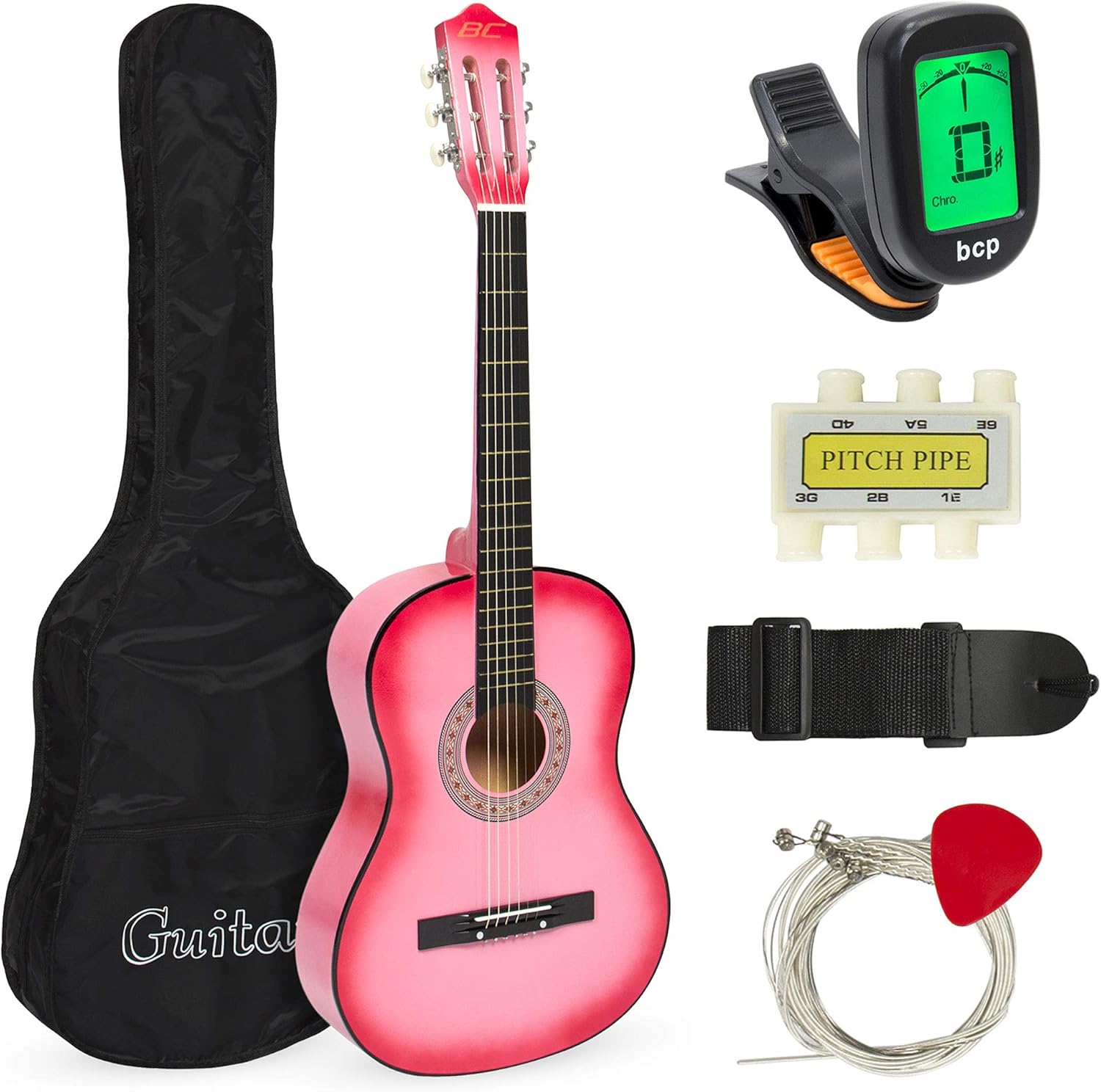 Pink Acoustic Guitar Strap - Amazon Com Best Choice Products 38in Beginner All Wood Acoustic Guitar Starter Kit W Case Strap Digital Tuner Pick Strings Pink Musical Instruments