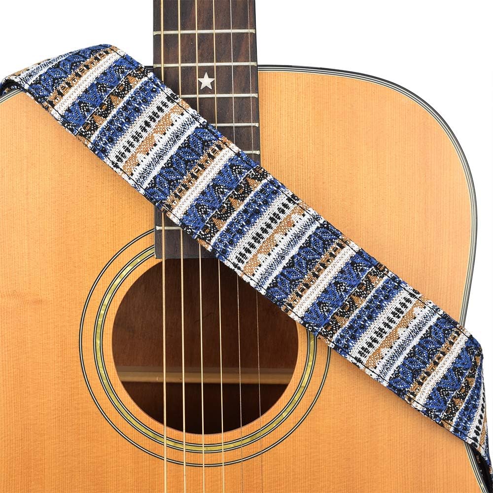 Blue Acoustic Guitar Strap - Vintage Woven Guitar Strap For Acoustic And Electric Guitars With 2 Ru Kliq Music Gear