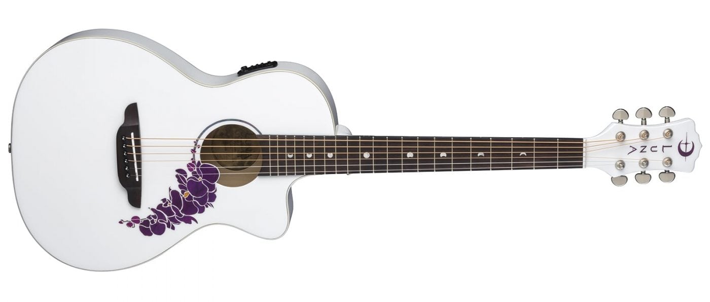 Luna Purple Acoustic Guitar - Luna Flora Orchid A E Classic White Mega Music Store