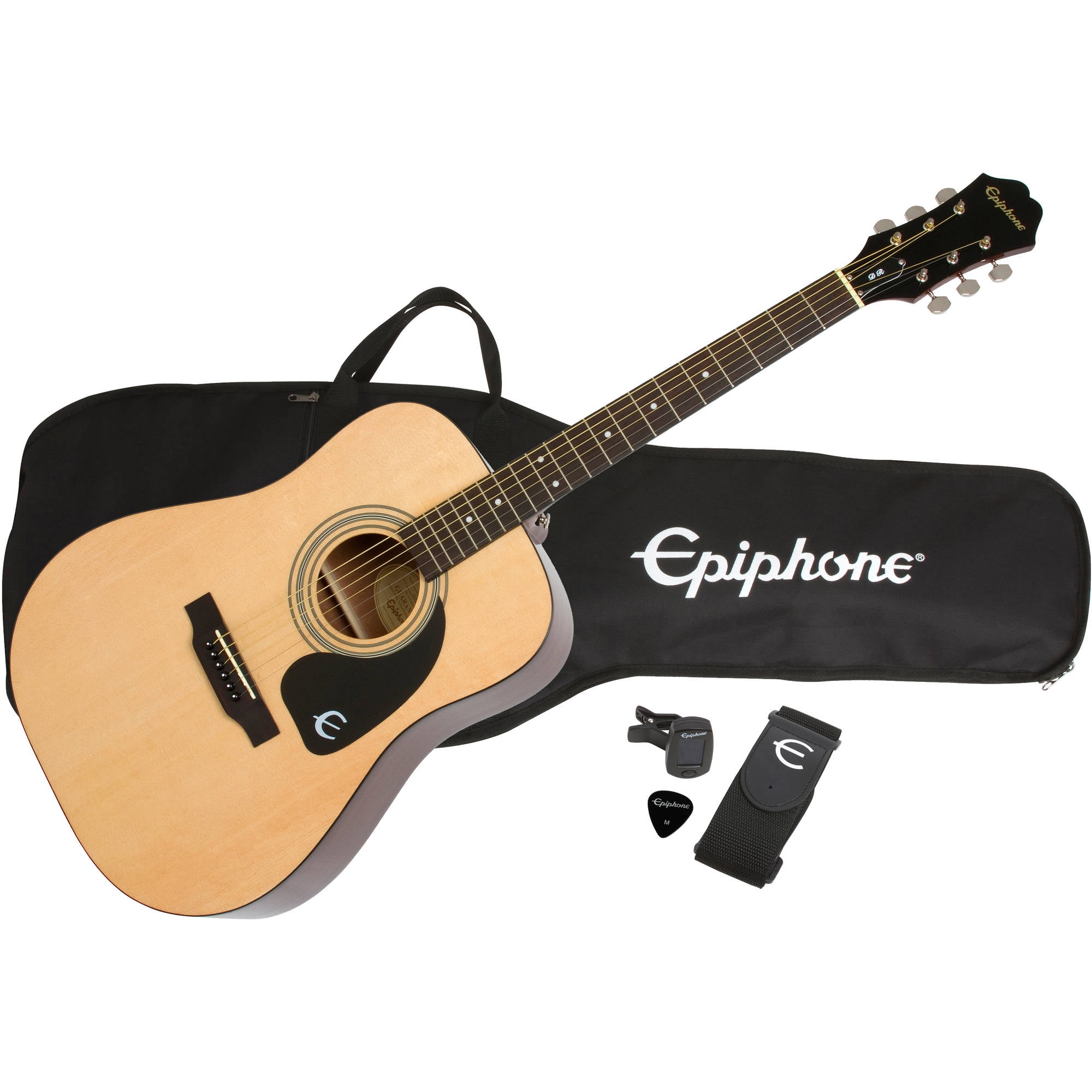 The rosewood fretboard soaks stray overtones in its oily pores and provides a warm sound with maximum sustain. The epiphone acoustic guitar with emedia instructional software and on stage xcg4 guitar stand has a security strap. Nevertheless, one should not forget that the company also has something to offer in terms of price and hearing in the field of acoustic guitars. Yamaha fs800 solid top small body acoustic guitar good beginner acoustic guitars have a wide range in price, but they usually go between $100. I got this epiphone dr 100 as a second guitar to my aj 220 sce. A nicely crafted acoustic that sports a select spruce top and mahogany body and neck, this instrument epitomizes epiphone's focus on affordable quality. You'll receive email and feed alerts when new items arrive. * spruce top * mahogany back and sides * chrome hardware.