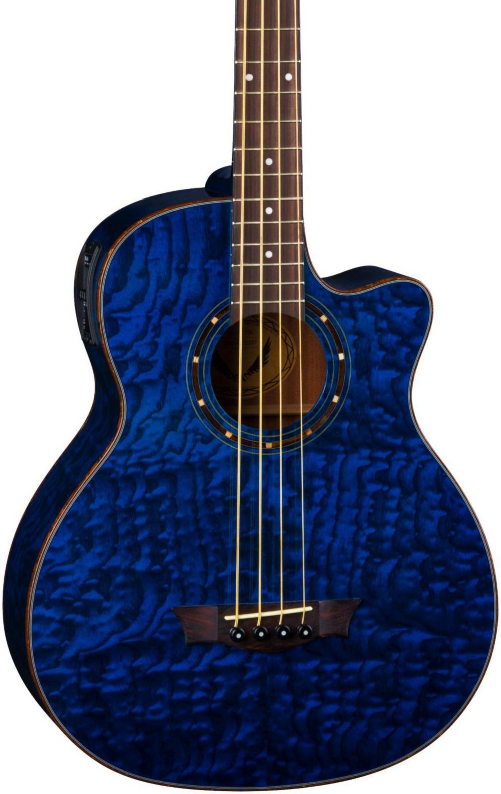 Dean Acoustic Electric Bass Guitar - Dean Eqaba Tbl Exotica Quilt Ash Acoustic Electric Bass Guitar With Aphex Trans Blue Guitar Affinity