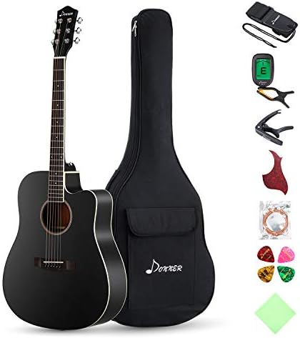 Donner Dag-1C Beginner Acoustic Guitar - Amazon Com Donner Dag 1cb Black Beginner Acoustic Guitar Full Size 41 Cutaway Guitar Bundle With Gig Bag Tuner Capo Picks Strap String Musical Instruments