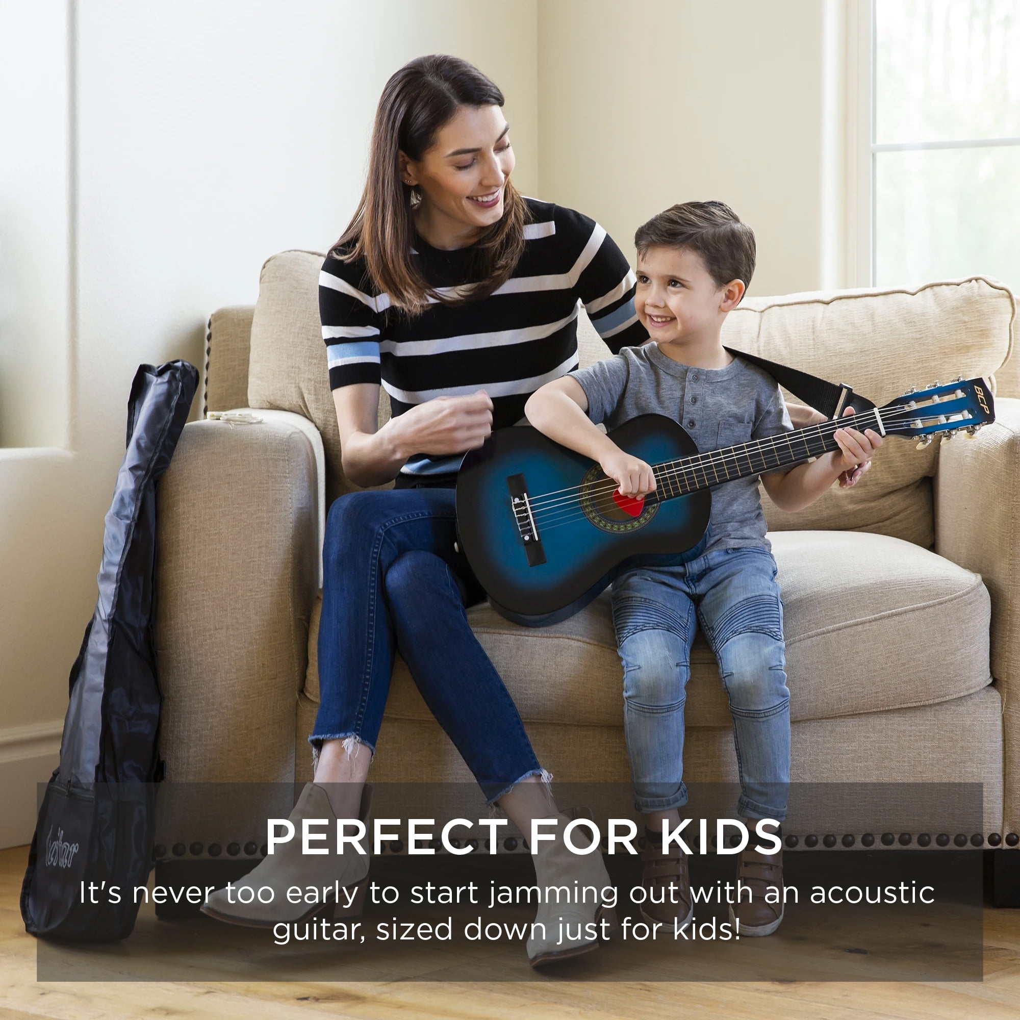 Kids Acoustic Guitar Strap - Gig Bag Teacher Approved Pitch Pipe Tuner Guitars Strap 38 Blue Acoustic Guitar Starters Beginner Package Bu Ag38 2 Pick Guards Extra String Directlycheap Pick Guitars Strings
