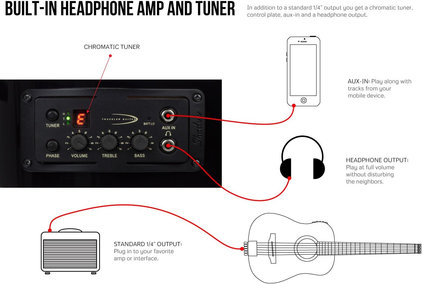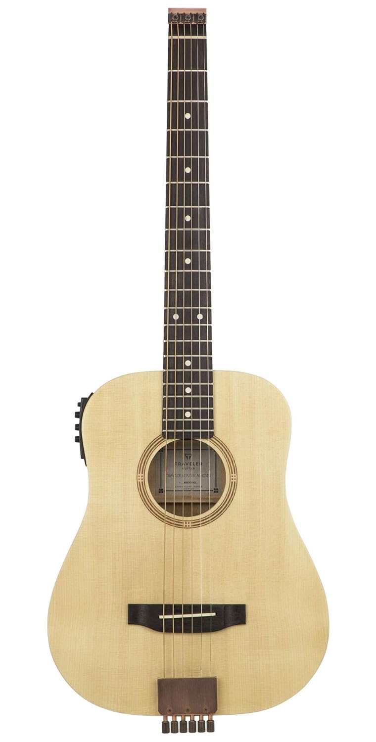 Another 40+ Traveler Acoustic Guitar Ag 200Eq. Traveler guitars have built their reputation on quality compact travel friendly instruments, gaining the trust of both professionals and hobbyists alike. Traveler guitar's streamline tuning system eliminates the need for a headstock, making the guitar smaller and better balanced than other travel acoustics. Fits easily in airline overhead compartments in the included deluxe gig bag. It's the ideal buddy for those who want something compact but cannot imagine playing on a guitar that's shorter than a full scale.