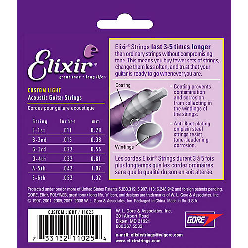 Current 28++ Elixir Acoustic Guitar Strings Custom Light. Elixir® strings are available in distinct protective coatings. Elixir acoustic guitar strings are the first major innovation in strings in over forty years. 8 sets of the custom light. Elixirs are the first major innovation in guitar strings in over forty years, and they deliver what they promise: