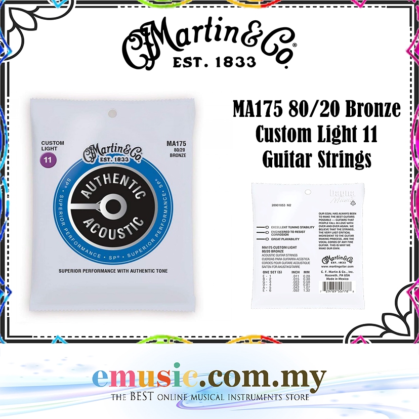 Martin And Co Acoustic Guitar Strings Light - Martin Co Ma175 Sp 80 20 Bronze Acoustic Guitar Strings Custom Light 11 52 Shopee Malaysia