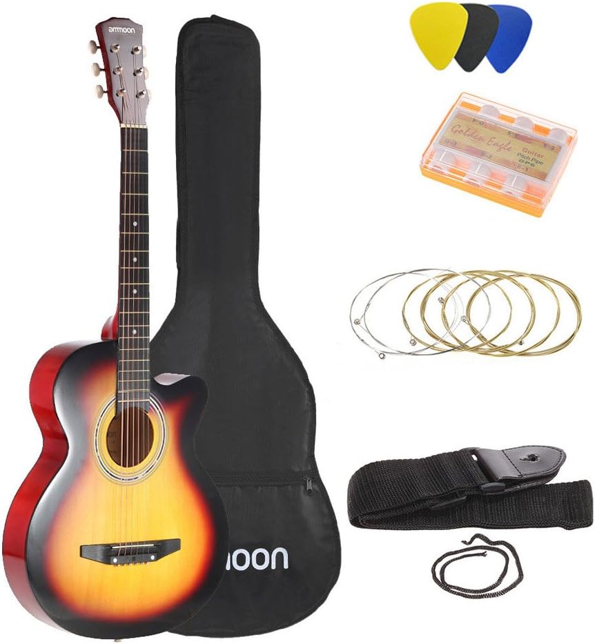 Ammoon Acoustic Guitar - Ammoon 38 6 String Cutaway Folk Acoustic Guitar With Bag Strap String Tuner Pick For Beginners Music Lovers Students Amazon Ca Musical Instruments Stage Studio