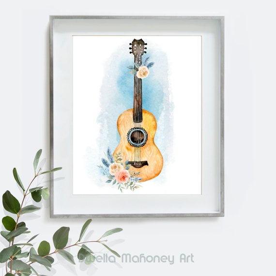 Boho Guitar Bag Acoustic - Boho Chic Acoustic Guitar Art Watercolor Print Nursery Wall Etsy