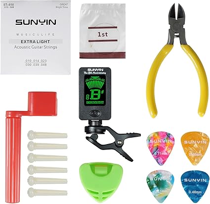 Guitar Tool Kit Acoustic - Amazon Com Sunyin Acoustic Guitar Tool Kit For Beginner With Guitar Strings Winder Guitar Tuner Cutter Bridge Pins Picks Pick Holder Guitar Accessories Set For Change The String Ordinary Musical Instruments