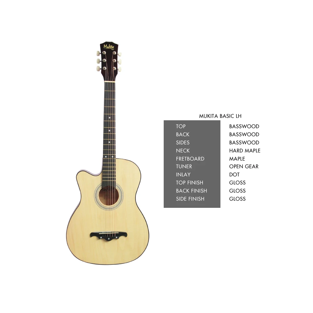 Left Handed Beginner Acoustic Guitar - Mukita By Blw Left Handed Standard Acoustic Folk Cutaway Basic Guitar Package 38 Inch For Beginners
