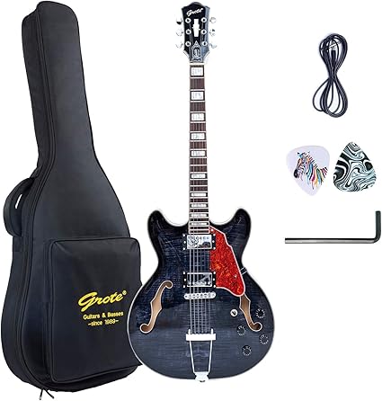 Semi Hollow Acoustic Electric Guitar - Amazon Com Grote Jazz Electric Guitar Semi Hollow Body Trapeze Tailpiece Bridge Guitar Gig Bag Black Musical Instruments