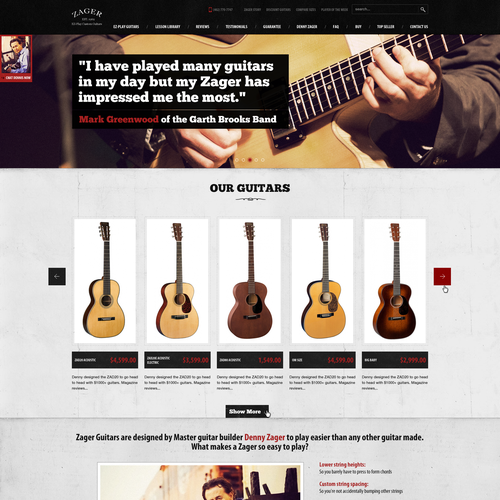 Zager Guitar Acoustic - Redesign Website For Zager Easy Play Custom Guitars Web Page Design Contest 99designs