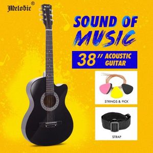 Black 38 Inch Acoustic Guitar - Melodic 38 Inch Folk Dreadnought Acoustic Guitar Pack W Classical Cutaway Gig Bag Black