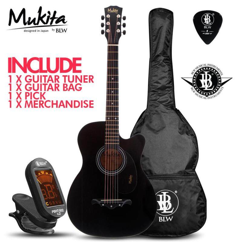 Black 38 Inch Acoustic Guitar - Mukita By Blw Standard Acoustic Folk Cutaway Basic Guitar Package 38 Inch For Beginners With Bag