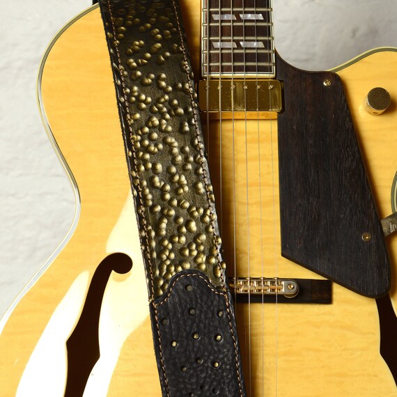 Padded Guitar Strap Acoustic - Padded Leather Guitar Strap Gs77 Two Tone Hammered Gold Etsy