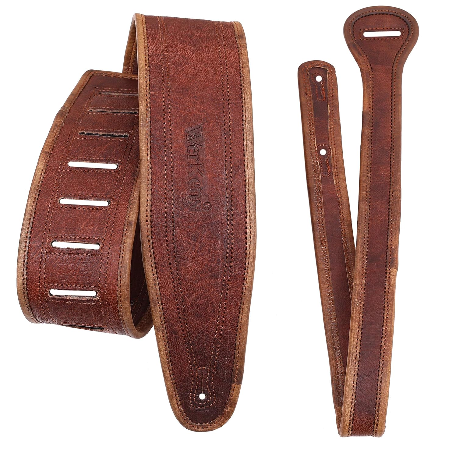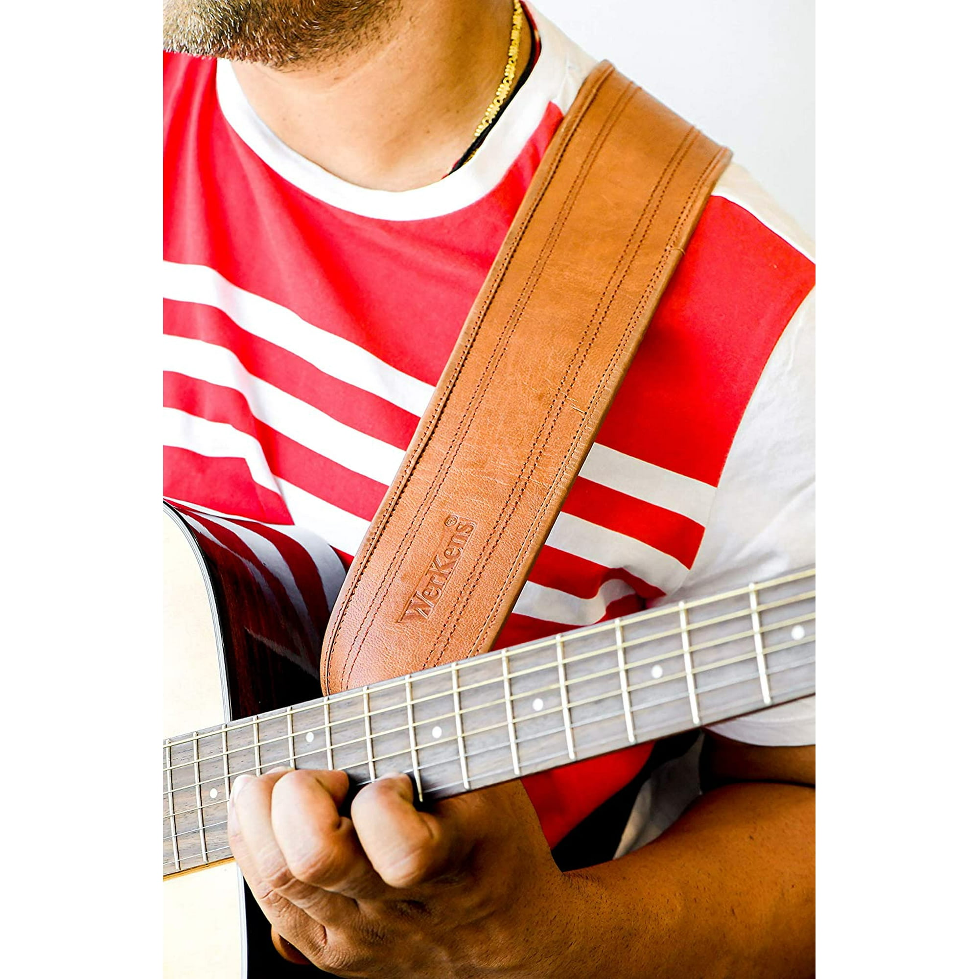 Padded Guitar Strap Acoustic - Werkens Genuine Leather Guitar Strap 3 Inch Wide 100 Leather Guitar Belt With Comfort Padded Grip Adjustable Length And Double Stitching 3 Inch Wide Amazon In Musical Instruments
