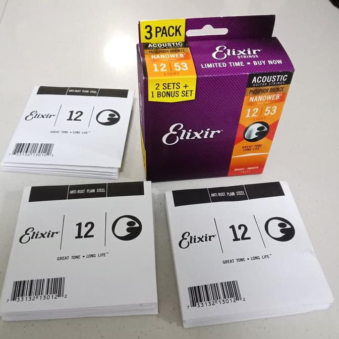 Elixer Guitar Strings Acoustic 3 Pack - Elixir 16542 Nanoweb Electric String 3 Pack Shopee Indonesia