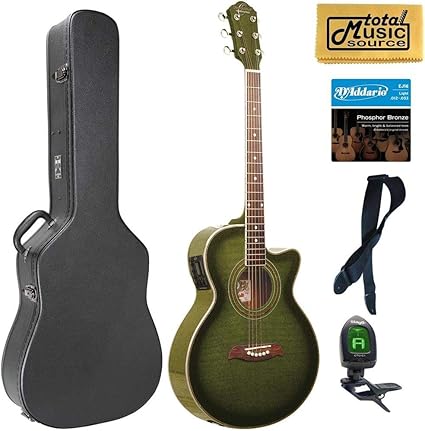 Concert Acoustic Guitar Case - Amazon Com Oscar Schmidt Concert Acoustic Electric Guitar Og10ceftgr Trans Green Case Bundle Musical Instruments