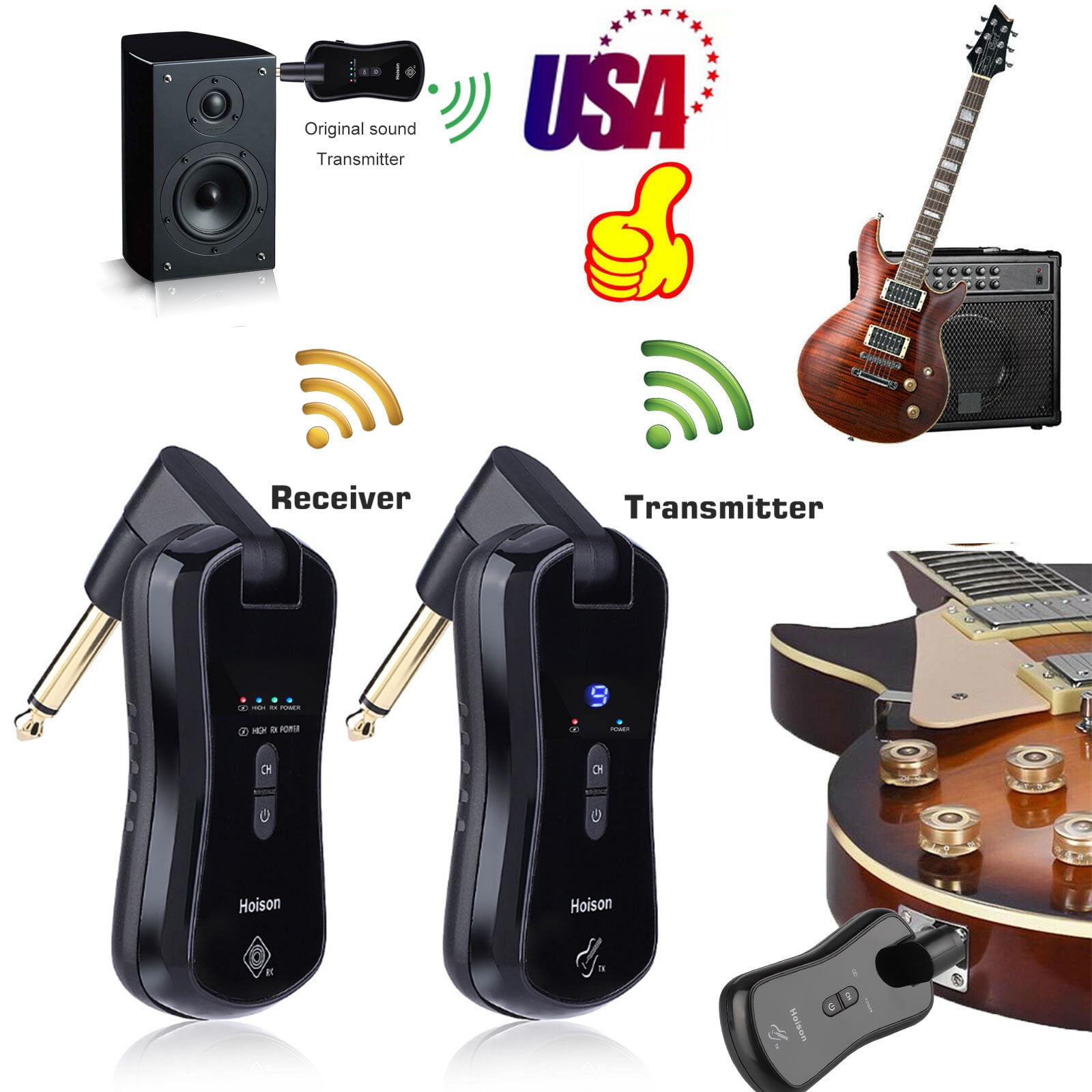 This system is not meant for active pickups or the microphone system pickups. 5.8g wireless guitar system transmitter+receiver 50m transmission range for acoustic electric guitar bass. A wireless system comprises two parts: A transmitter and a receiver. Trova una vasta selezione di wireless guitar a prezzi vantaggiosi su ebay. 1 * transmitter 1 * receiver 1 * usb charging cable 1 * users' manual(english. The wireless bluetooth guitar transmitter is an electronic device which wiped out wired devices. Wireless digital audio guitar system bass transmitter receiver guitars accessory.
