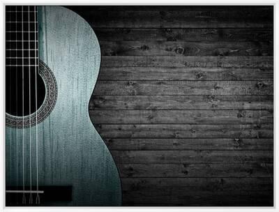 Grey Acoustic Guitar - Part Of A Blue Acoustic Guitar On A Gray Wooden Background Photographic Print Boiko Y Art Com