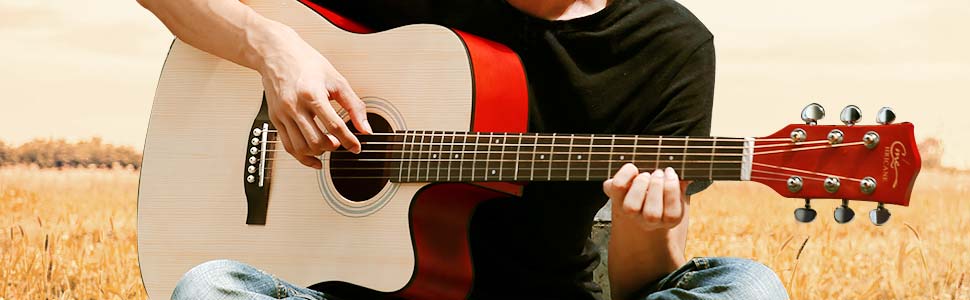 Hricane Acoustic Guitar - Amazon Com Hricane Acoustic Guitar 41 Full Size Cutaway Steel String Folk Guitar For Beginners Adults With Gig Bag Extra Strings And Polishing Cloth Gu 2 Cutaway Musical Instruments