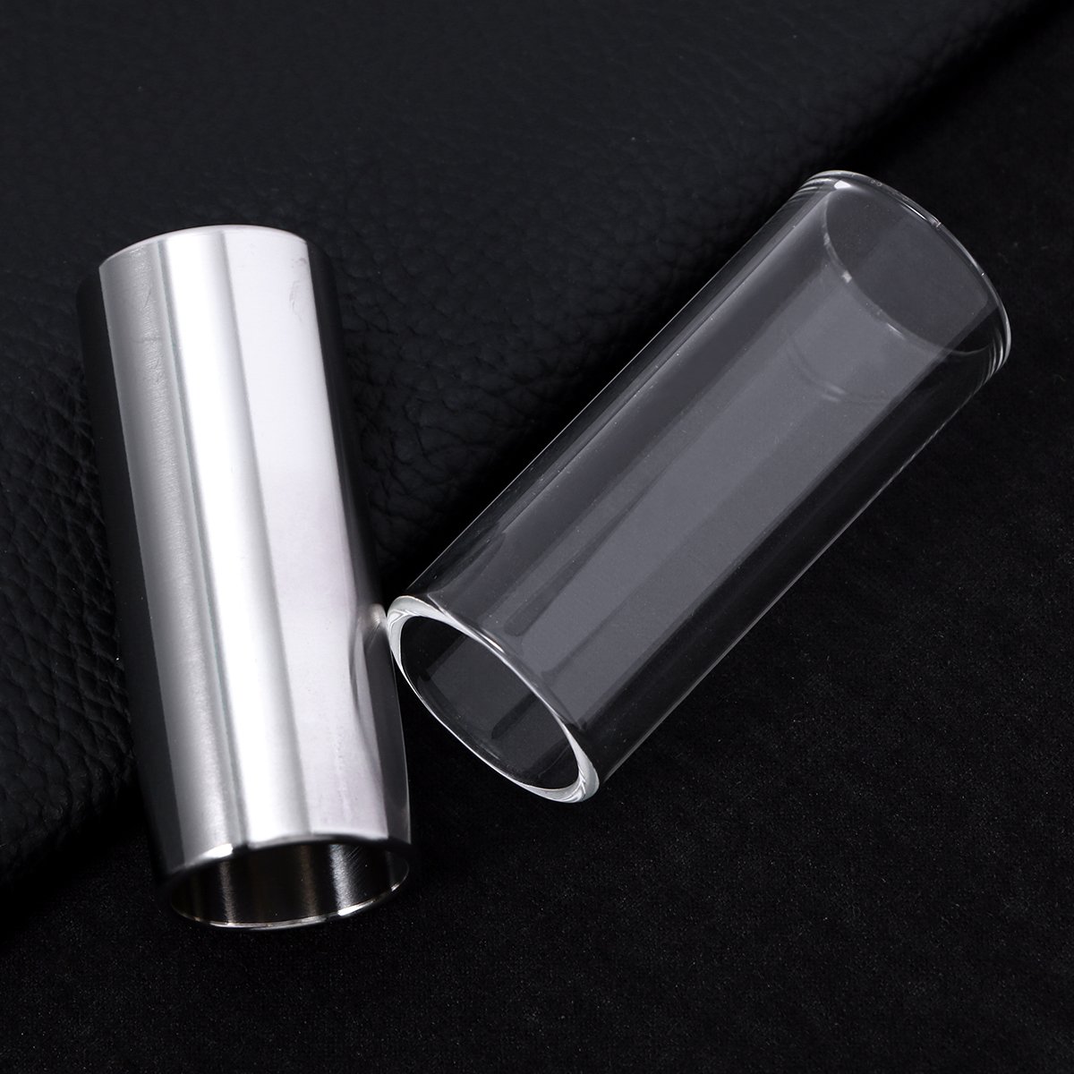 Guitar Slides For Acoustic - Transparent And Silver Artlily Glass Guitar Slides And Stainless Steel Slides Set For Electric Acoustic Guitar Bass 2pcs 60mm Slides