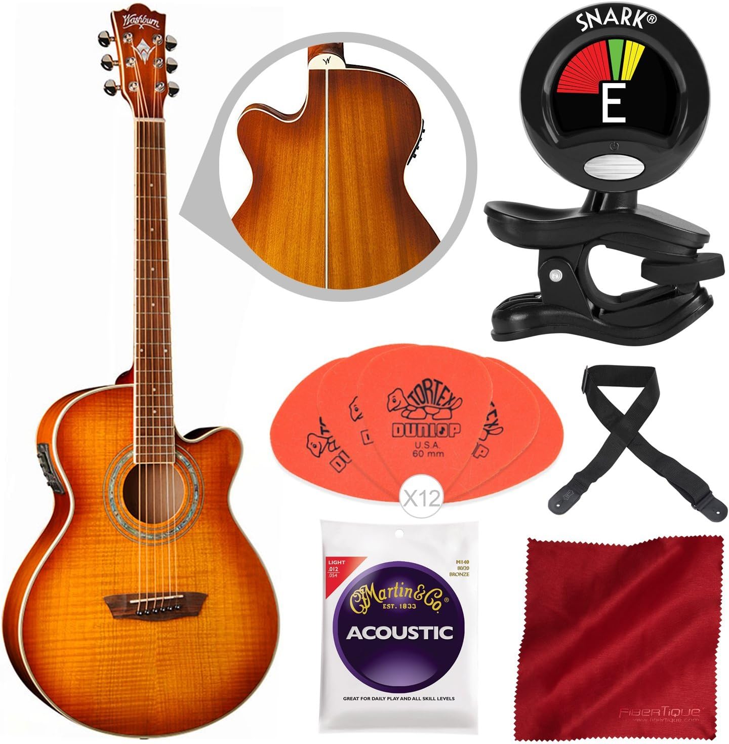 Washburn Thinline Acoustic Guitar - Amazon Com Washburn Ea15itb Festival Series Mini Jumbo Acoustic Electric Guitar With Guitar Pick Clip On Tuner And Accessory Bundle Musical Instruments