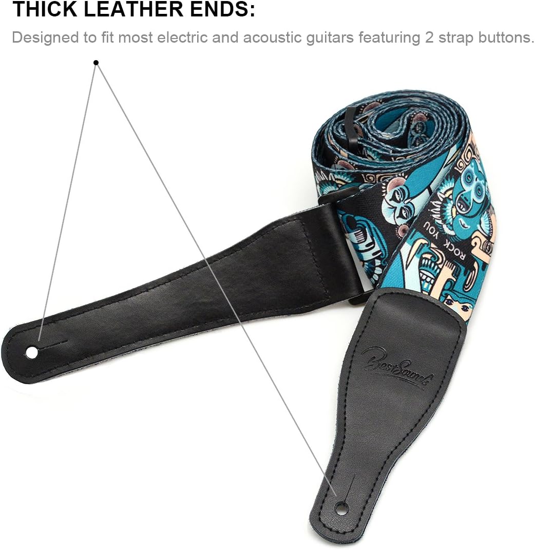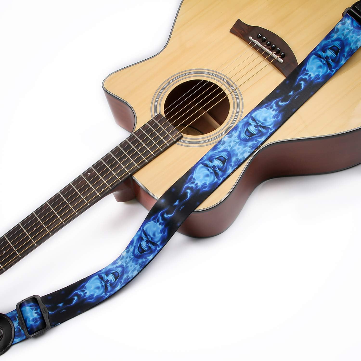 Blue Guitar Straps Acoustic - Amazon Com Guitar Strap With Leather Ends Adjustable Polyester Sling For Bass Electric Acoustic Guitars Unique Blue Skull Pattern Musical Instruments