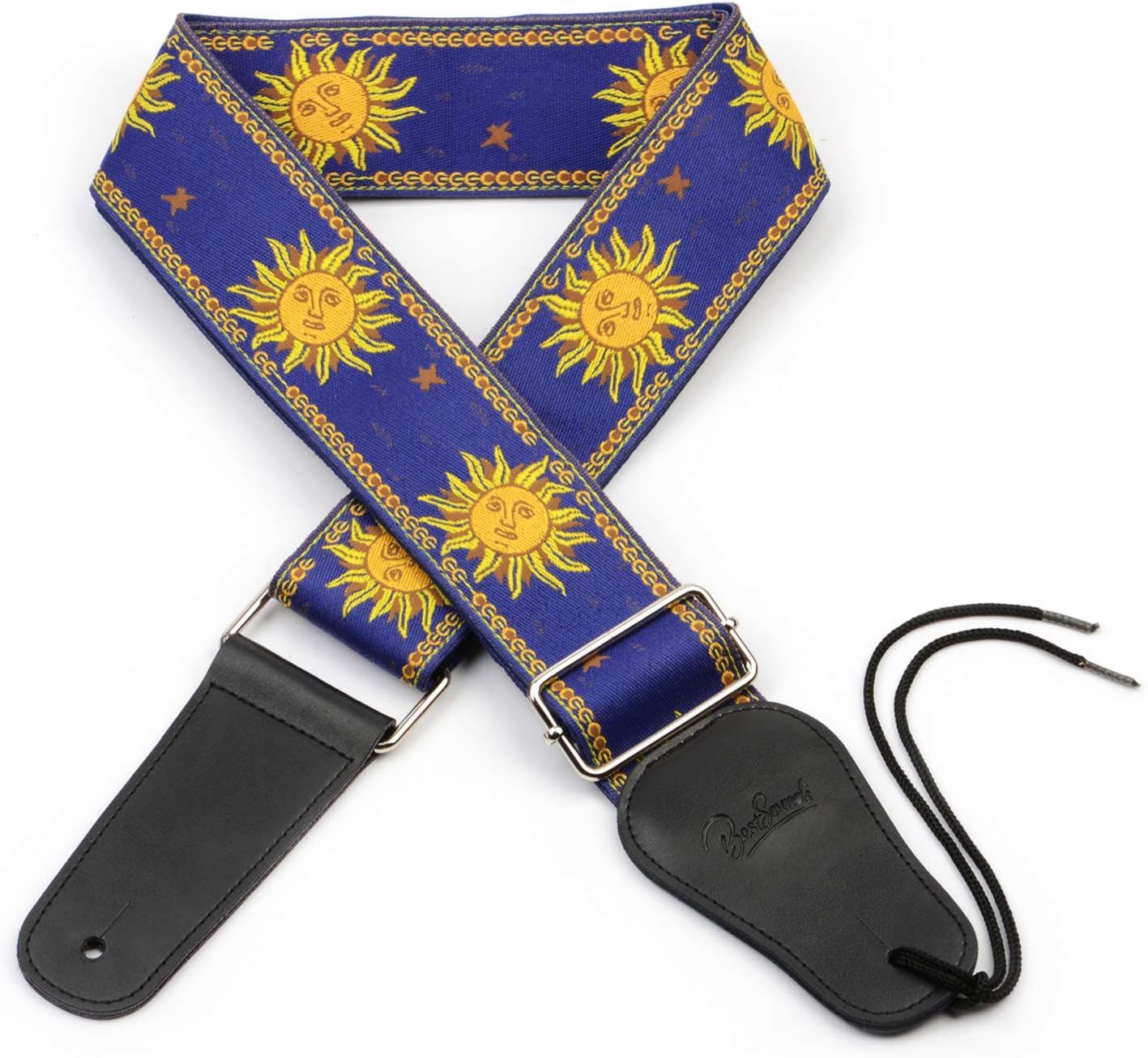 Blue Guitar Straps Acoustic - Amazon Com Guitar Strap Sun Design Jacquard Weave Guitar Strap With Double Deck Leather Ends Ajustable For Bass Acoustic Electric Guitars Blue Musical Instruments