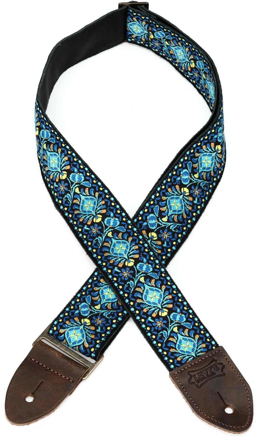 Blue Guitar Straps Acoustic - Levy S M8 2 Jacquard Weave Vintage Hootenanny Guitar Strap Funky Blue 4 Sweetwater