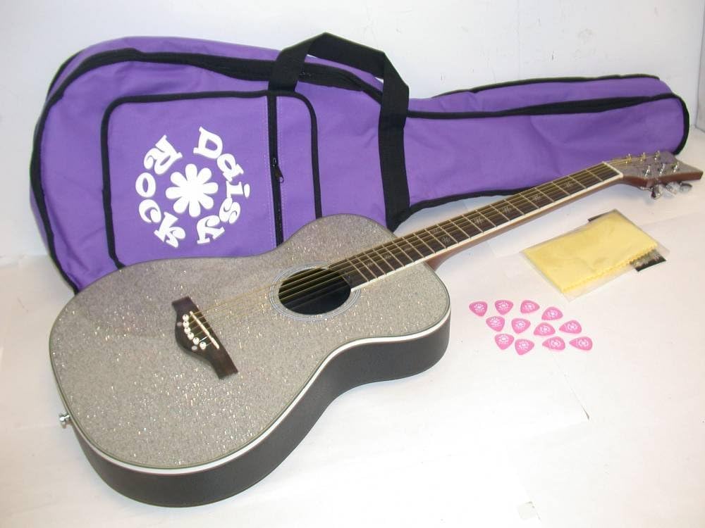 This beautiful guitar is lightweight and sounds great. Daisy rocks are designed to fit your hands, to fit your body and to inspire you. It contains a dazzling sparkle finished, full scale, lightweight acoustic guitar that's designed especially for girls. It features daisy rock's trademark slim & narrow, neck which makes it easier for girls with smaller hands to play. It features daisy rock's trademark slim & narrow neck which makes it easier for girls with smaller hands to play. It features daisy rock's trademark slim & narrow neck which makes it easier for girls with smaller hands to play. Amazon.com about the company tish ciravolo, founder of daisyrock, created this line of guitars and accessories due to her passion for making music, as well as her desire to level the playing field for female guitarists. browse our daily deals for even more savings!