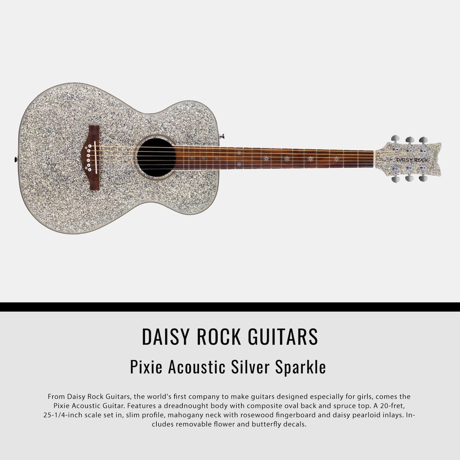 Daisy Rock Pixie Acoustic Guitar - Amazon Com Daisy Rock Pixie Acoustic Silver Sparkle Guitar 14 6206 Composite Oval Back Spruce Top Includes Matching Gig Bag 12 Daisy Rock Picks Tms Polishing Cloth Musical Instruments