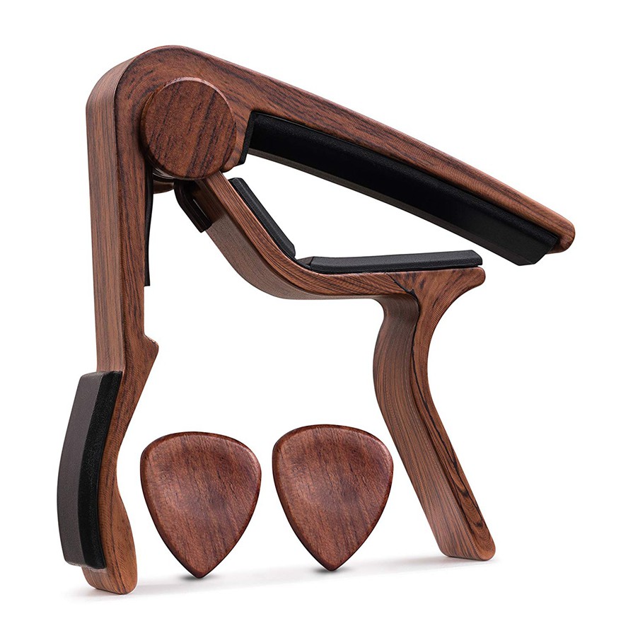 Guitar Capo Acoustic Wood - Rosewood Wood Color Guitar Capo With 2 Picks For Acoustic Electric Guitar For Sale Online