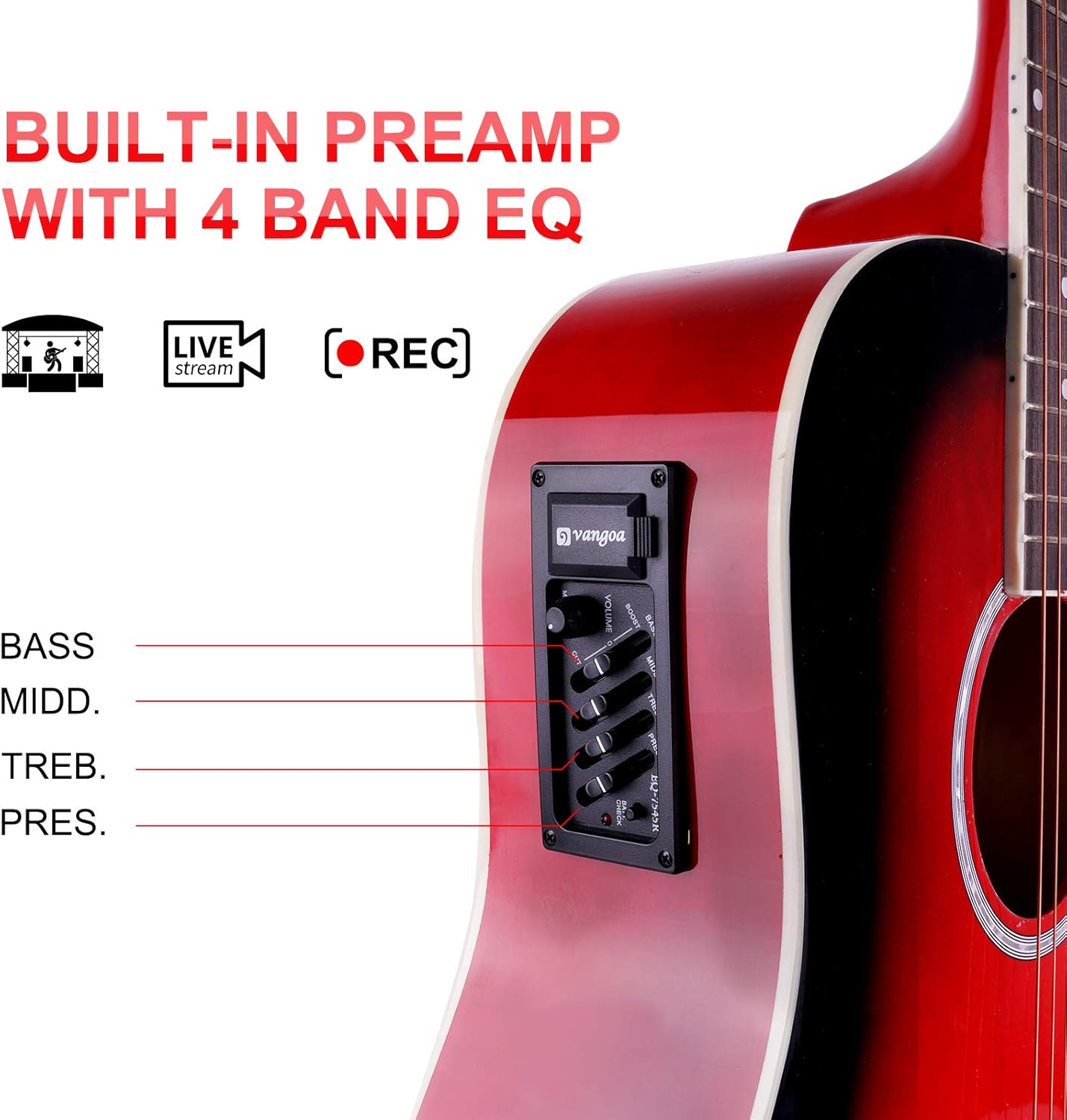 Vangoa Acoustic Guitar - Vangoa 41 Inch Full Size Vg 41ecr Red Acoustic Electric Cutaway Guitar With Guitar Gig Bag Strap Tuner String Picks Capo Maret Guitar Accessories