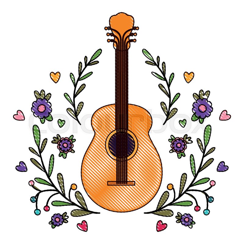 Floral Acoustic Guitar - Acoustic Guitar On A Floral Background Royalty Free Cliparts Vectors And Stock Illustration Image 14657483