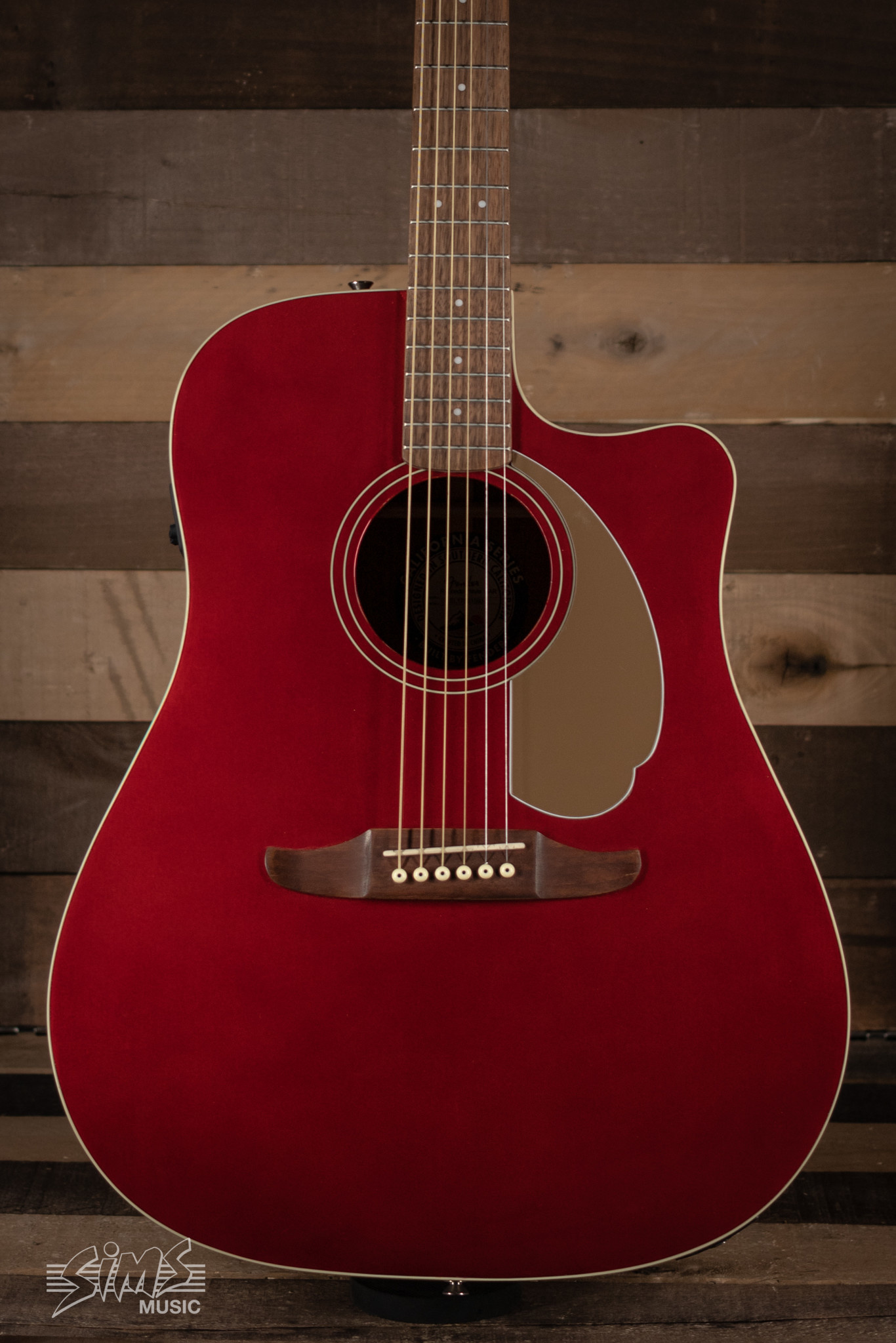 Red Fender Acoustic Guitar - Fender Redondo Player Red Square Shoulder Dreadnought Sims Music
