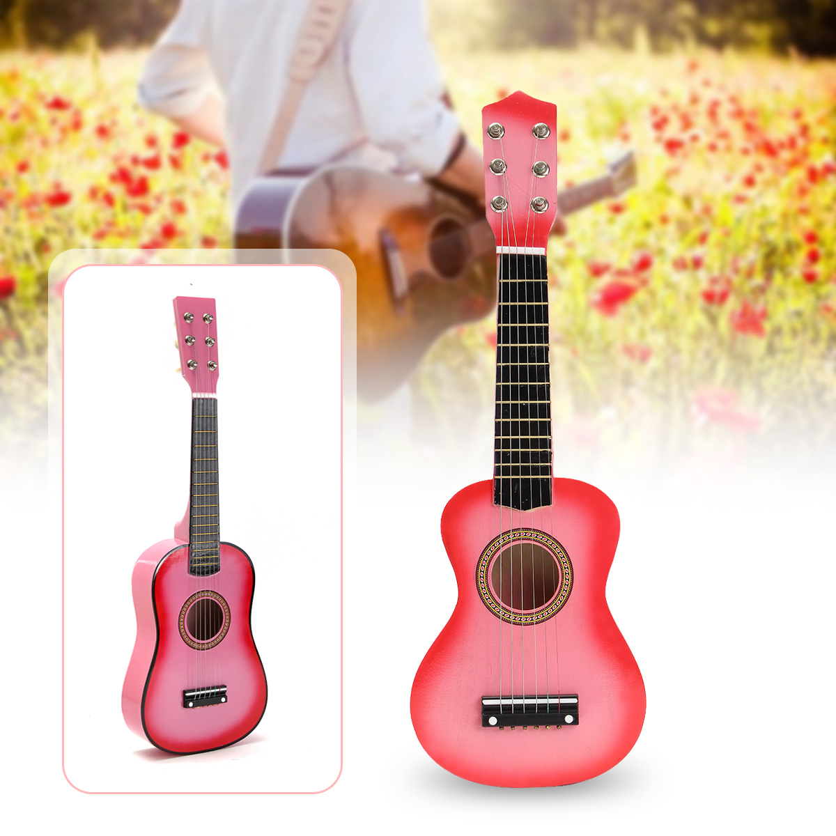 New 13+ 23 Acoustic Guitar Kids Size. The 3/4 scale size of this guitar is just perfect for any kid who wants to start learning the guitar. Package:1 x 23 childrens pink acoustic guitar. It is a steel string acoustic guitar, which is perfect for pretend play. 23 kids size guitar acoustic + pick + strings red.