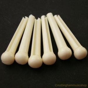 The pin has a slot along it's length for the string. Swapping your acoustic guitar bridge pins can be a fun and relatively inexpensive upgrade for your instrument. Though bridge pins come in different sizes/tapers the most common is 3° and 5°. The job of the bridge pin is to hold the string in place at the bridge, and while plastic pins get the job done, there are several other materials that can greatly improve your guitar's tone. Cream plastic acoustic guitar bridge pins with black dots. Okay, you're restringing your acoustic guitar and discover that a bridge pin is stuck. Replacing your plastic bridge pins with walrus jawbone will provide the same richness as bone, only with better overtones and more rounded harmonics while walrus ivory will go far in increasing your guitar's volume, sustain and clarity. In this universe, you can get bridge pins for less than a buck for a set of plastic cheepies.