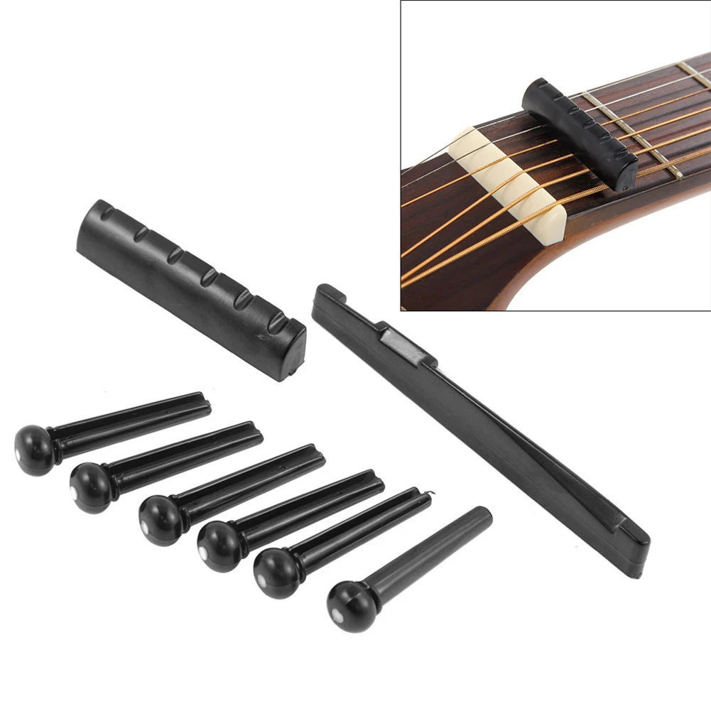 Plastic Acoustic Guitar Bridge Pins - 1 Set Acoustic Folk Guitar Plastic Material Bridge Pins Saddle Nut Black Guitar Parts Set Guitarra Accessories Guitar Parts Accessories Aliexpress