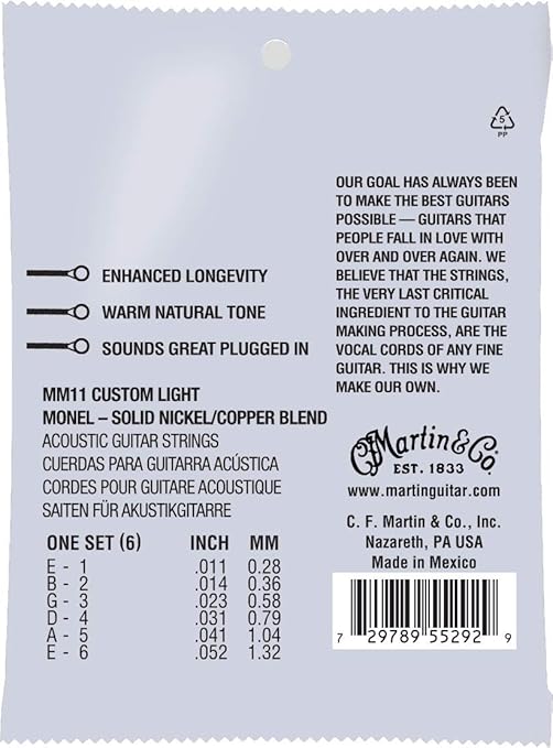 Martin Retro Acoustic Guitar Strings Custom Light - Amazon Com Martin Retro Acoustic Guitar Strings 011 052 Custom Light Mm11 Musical Instruments