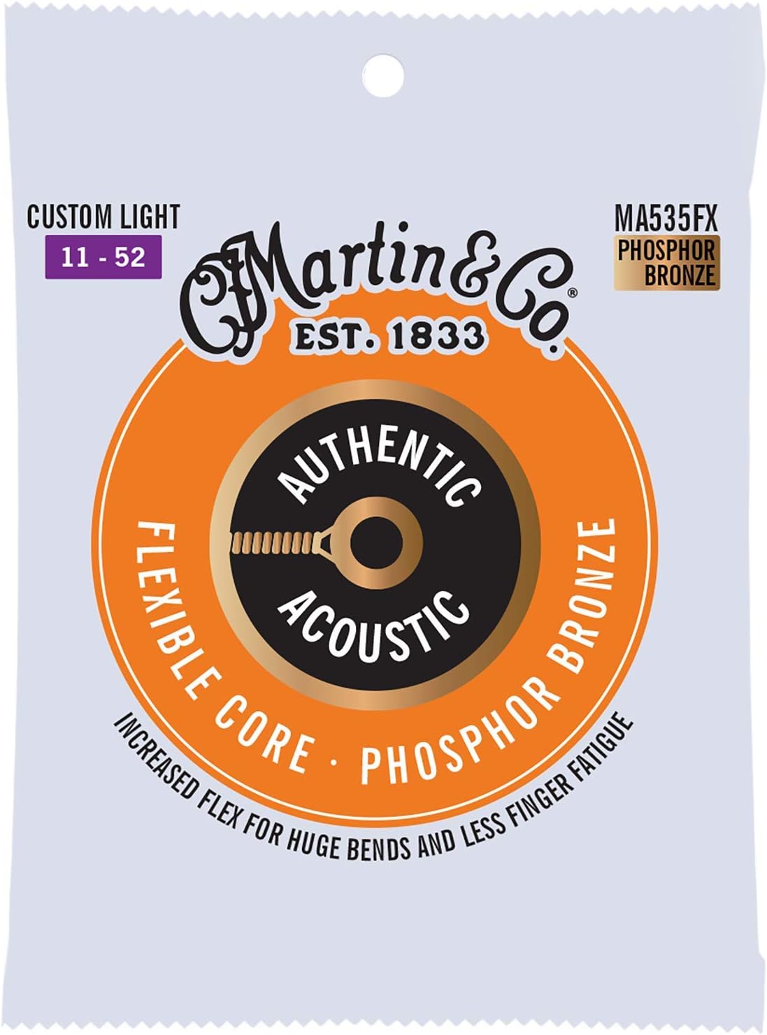 Martin Retro Acoustic Guitar Strings Custom Light - Amazon Com Martin Guitar Authentic Acoustic Flexible Core Ma535fx 92 8 Phosphor Bronze Custom Light Guitar Strings Musical Instruments