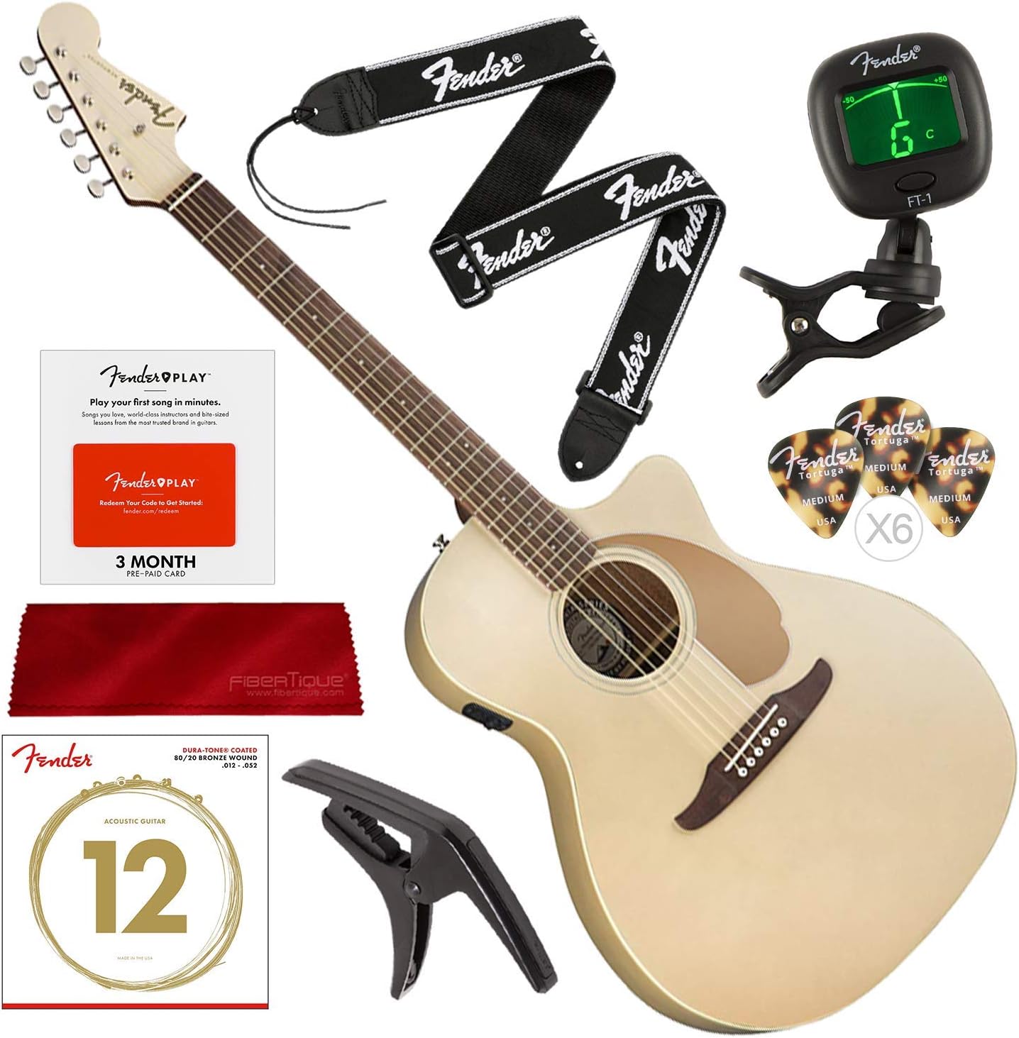 Capo For Acoustic Guitar Fender - Fender Newporter Player California Series Acoustic Guitar Champagne With Fender Play Pre Paid Card Tuner Strap Strings Picks Capo Deluxe Bundle Amazon Co Uk Musical Instruments