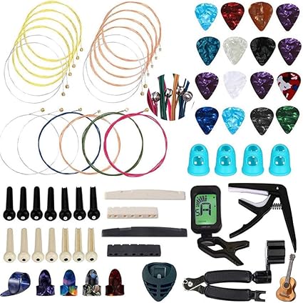 Guitar Assesories Acoustic - Amazon Com 66 Pcs Guitar Accessories Kit Including Acoustic Guitar Strings Guitar Picks Guitar Feet Capo Tuner String Cutter String Winder Bone Bridge Thumb Paddles Guitar Silicone Finger Guards Musical Instruments