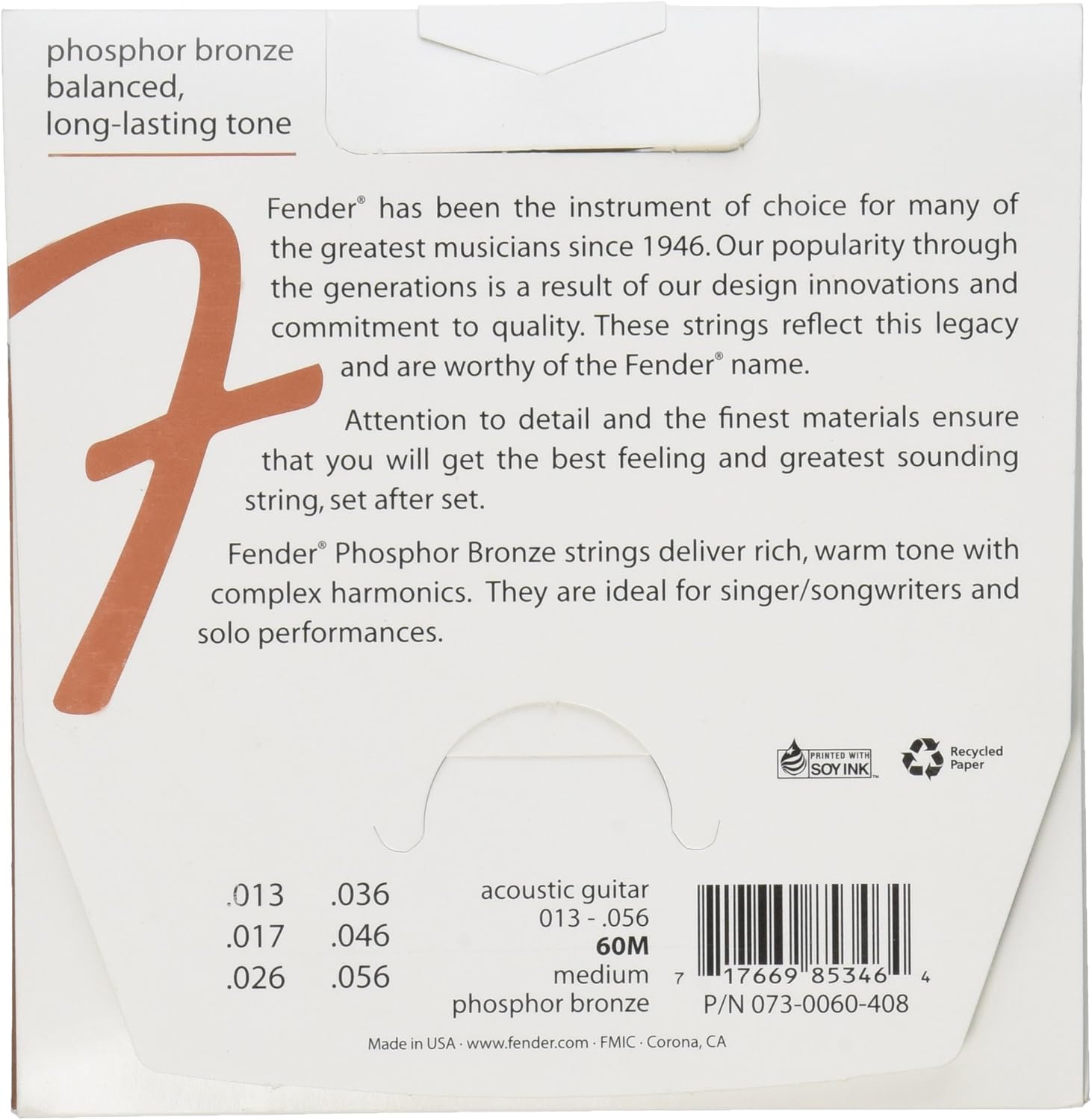 Unique 20++ Fender Phosphor Bronze Acoustic Guitar Strings. Fender phosphor bronze wound strings deliver, rich, warm tones with complex harmonics. They arean excellent choice for solo guitar work, and a superbcomplement to a vocal. The warmth and richness of phosphor bronze stringsadd depth to the sound of acoustic guitars. 4.6 из 5 звездоч., исходя из 58 оценки(ок) товара(58).