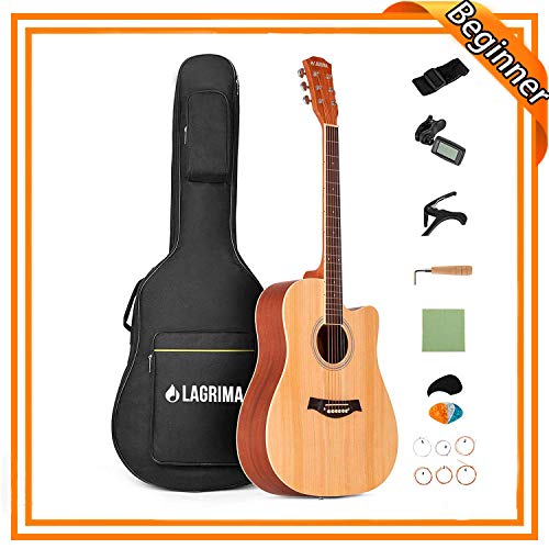 Lagrima Acoustic Guitar 38 - Strap For Beginners Lagrima 38 Acoustic Guitar Cutaway Design Black Adults Natural 6 Steel Strings With Nylon Bag Tuner Kids Pickups Talkingbread Co Il