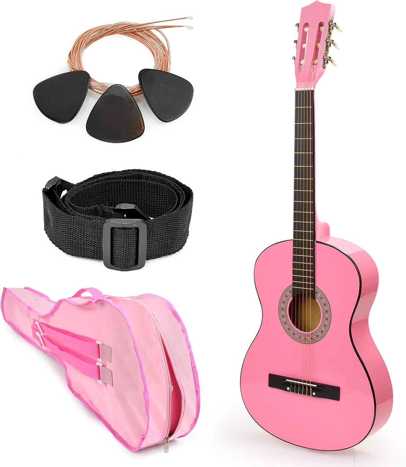 Pink Acoustic Guitar Kids - Melodic 34inch Kids Acoustic Guitar Beginners With Bag Tuner Strings Picks Pink