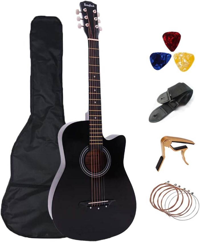 Guitar 38 Inch Acoustic - Melodic 38 Inch Round Acoustic Guitar Pack Classical Cutaway Black Crazy Sales